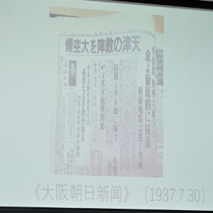 7月28日,南开大学座谈会上播放日军轰炸南开大学的一组史料。