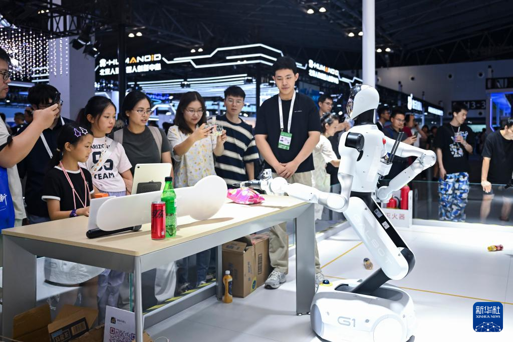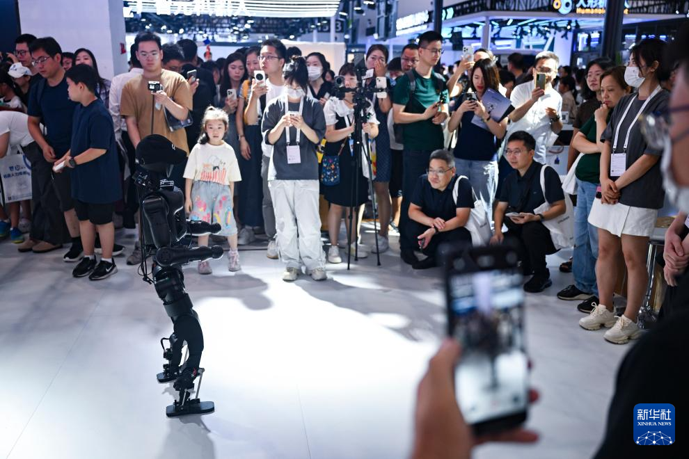 7月29日,参观者在观赏一款可用于零售、工业等多种场景的机器人。