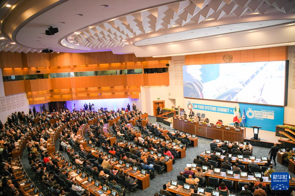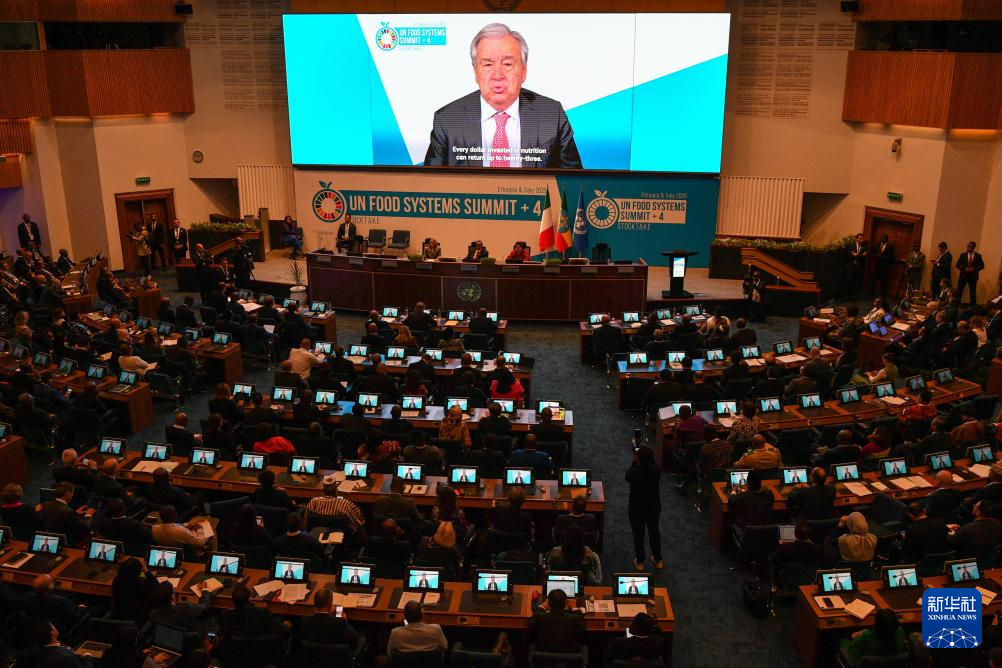 这是7月28日在埃塞俄比亚首都亚的斯亚贝巴拍摄的第二届联合国粮食系统峰会现场。