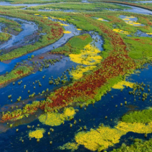 近日,黑龙江挠力河国家级自然保护区湿地中的驴蹄草盛开花朵,湿地仿佛披上了黄绿相间、色彩明艳的绸缎。