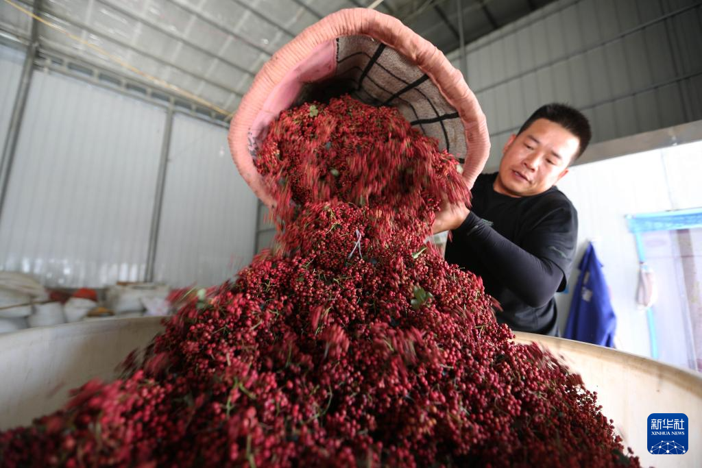 盛夏时节,甘肃省天水市甘谷县的花椒进入采摘旺季,村民们趁着晴好天气采摘、晾晒、交售花椒,销往四川、重庆、山东等地。