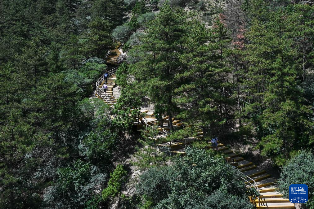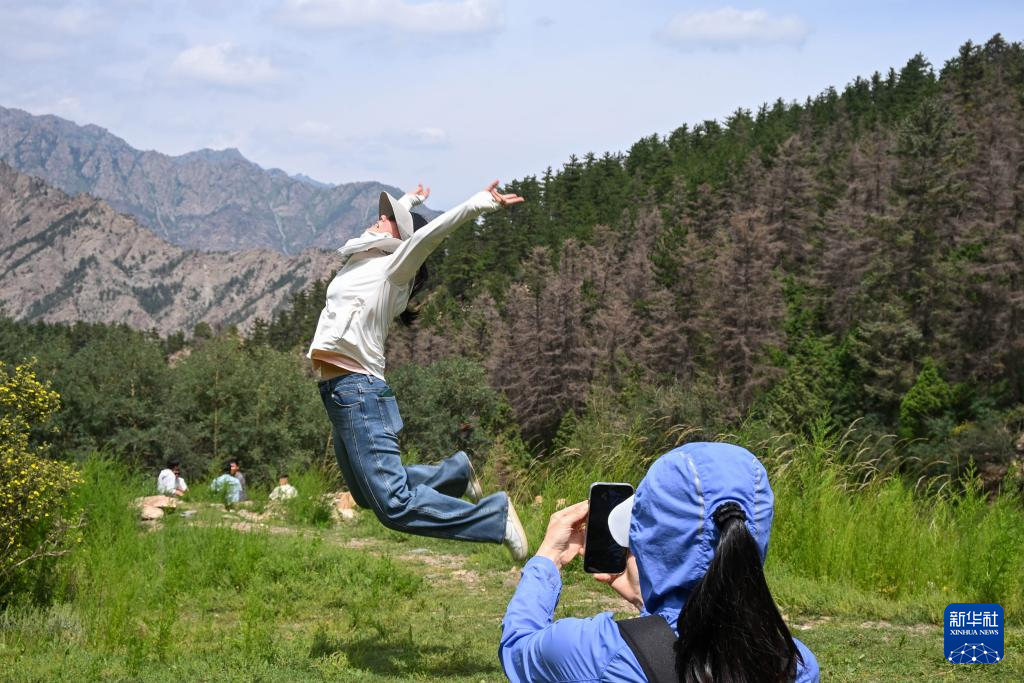 夏日时节,宁夏贺兰山国家森林公园植被茂密,气温适宜,吸引众多游客前来避暑休闲。