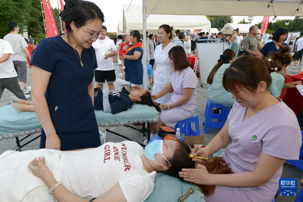 近日,黑龙江省牡丹江市首届中医药文化夜市迎客,来自当地30多家医疗机构的医务人员,为市民提供把脉、艾灸、按摩等义诊和健康咨询等服务,吸引了众多市民参与。