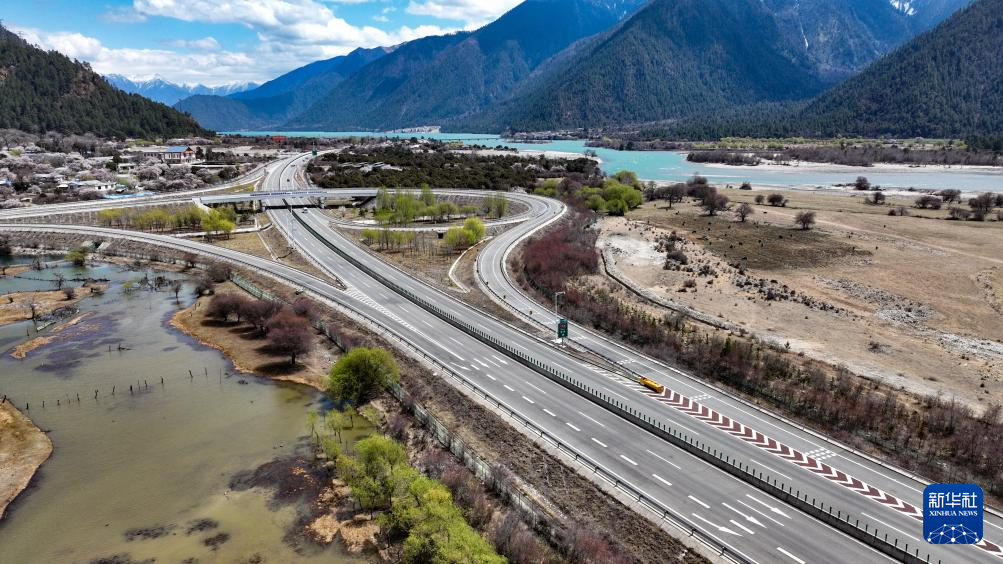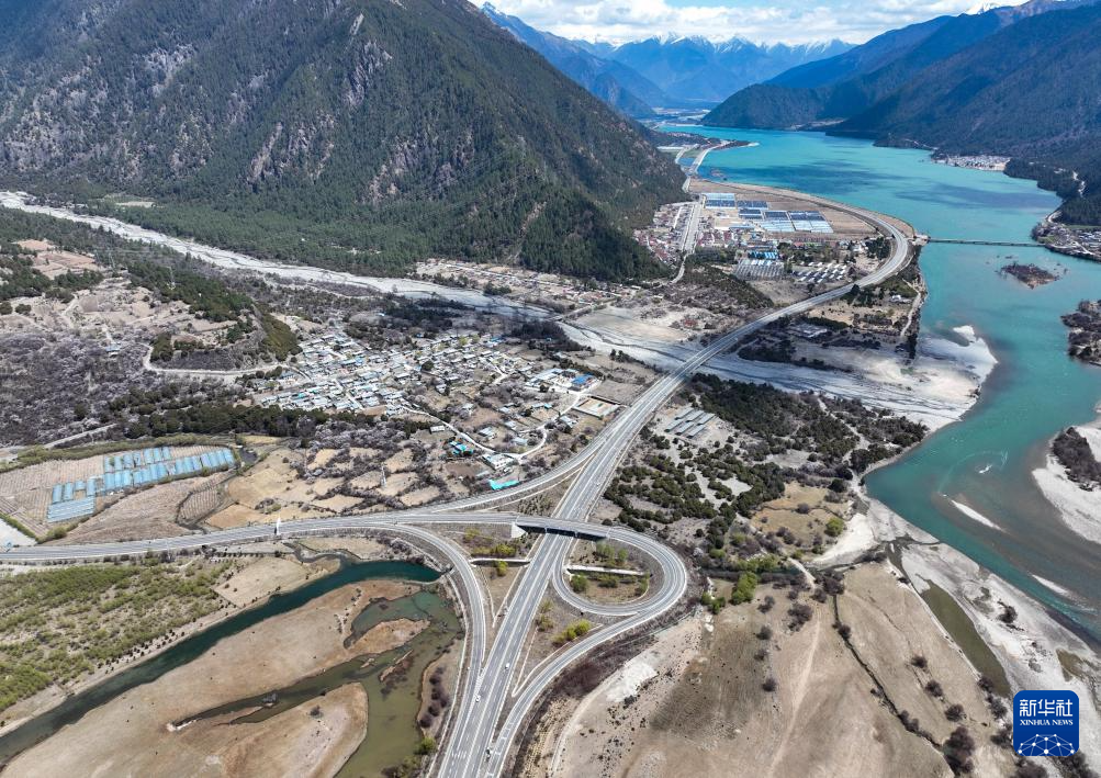拉萨至林芝的高等级公路(无人机照片,2025年4月1日摄)。