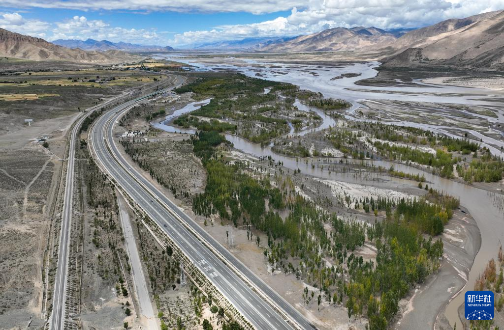 拉萨至日喀则的高等级公路(无人机照片,2024年9月11日摄)。