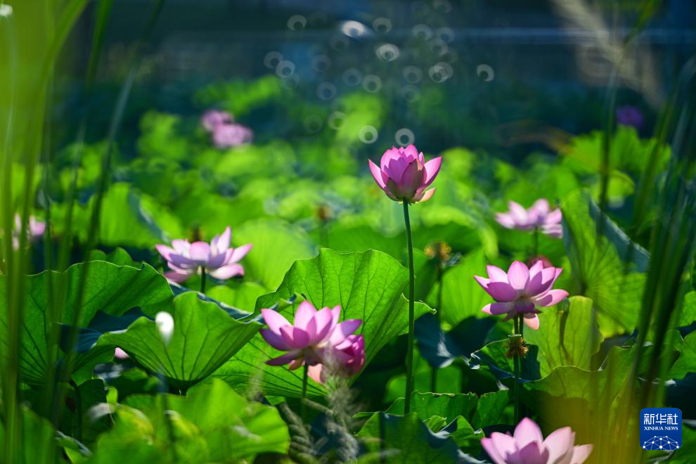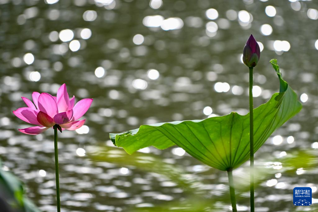 7月1日在江苏省淮安市金湖县起点公园拍摄的荷花。