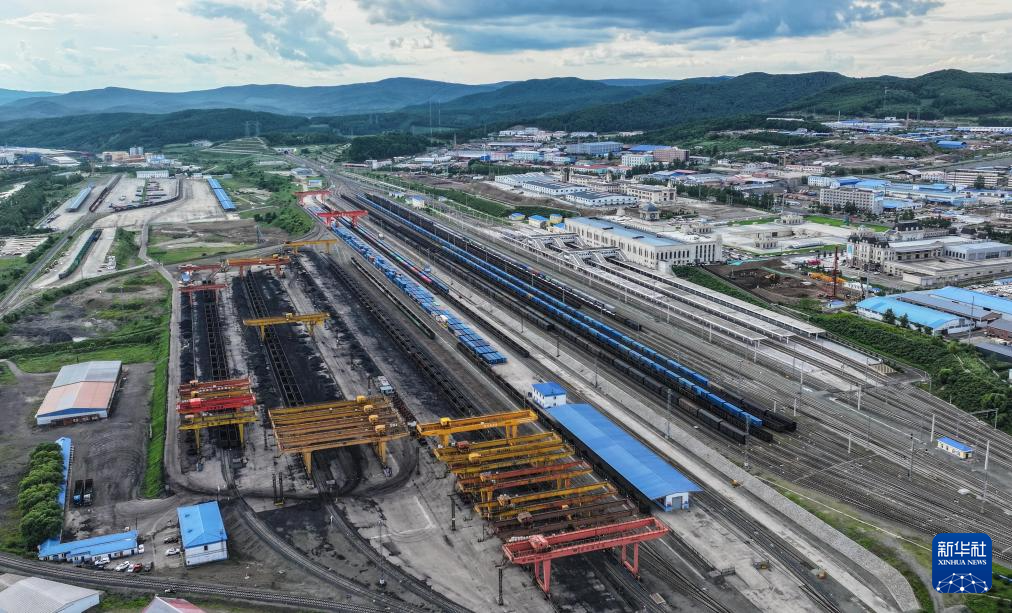 8月5日拍摄的中国铁路哈尔滨局集团有限公司绥芬河站北场(无人机照片)。