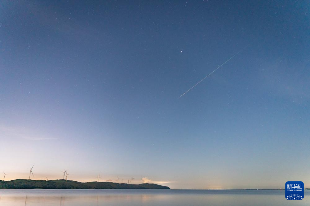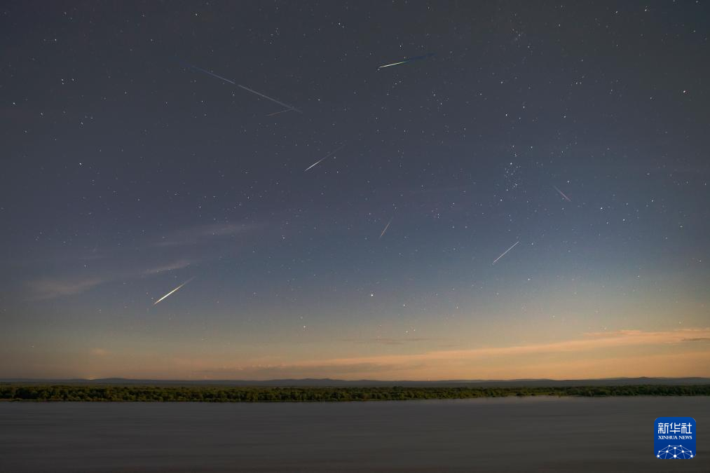 8月13日凌晨在黑龙江省松花江富锦段拍摄的英仙座流星雨。