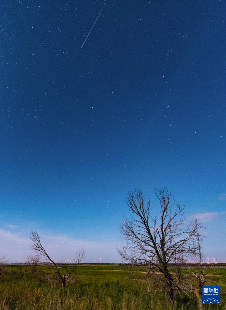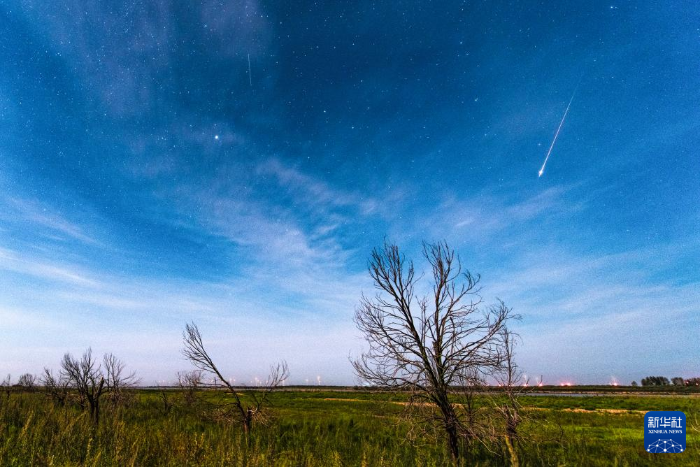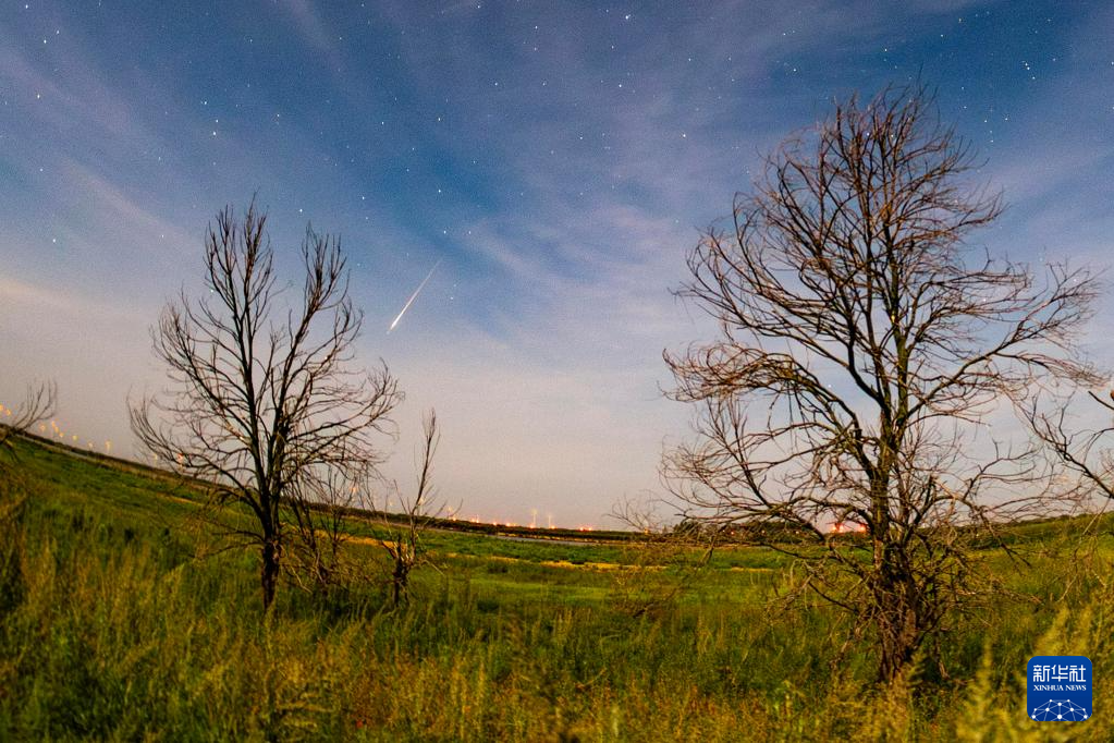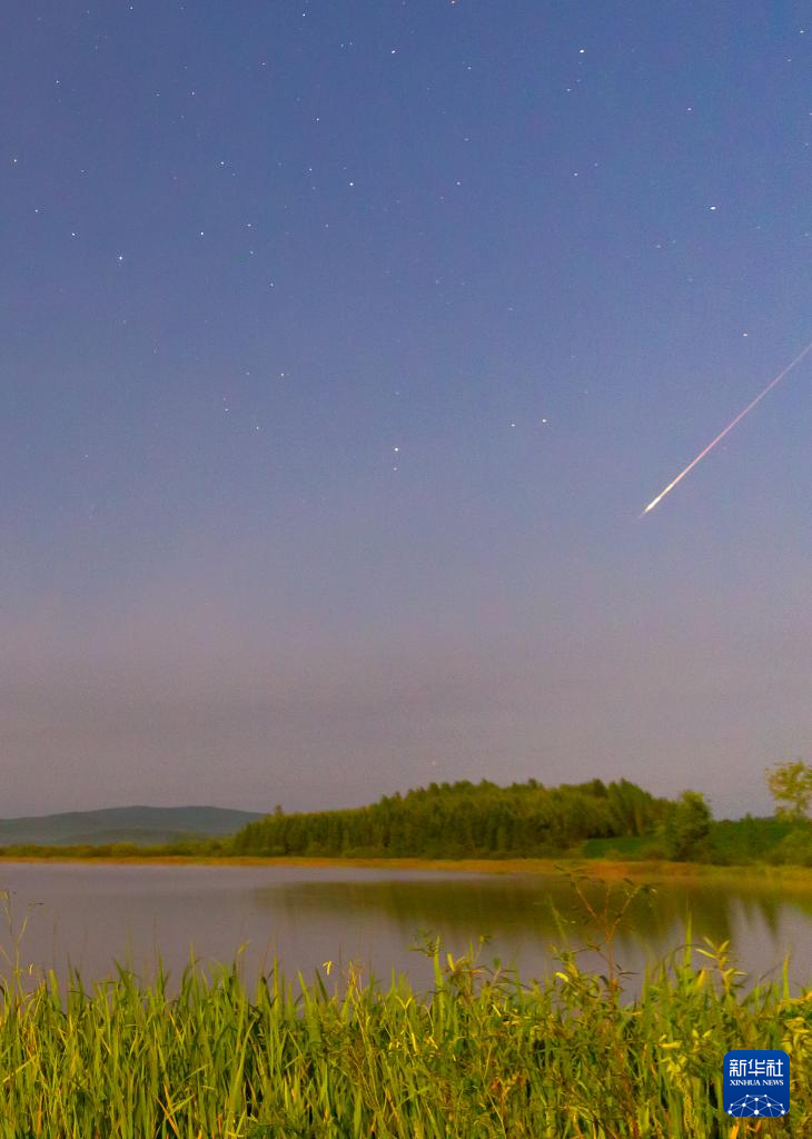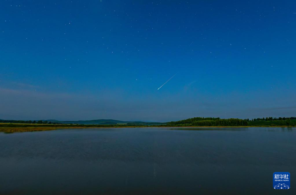 8月11日在黑龙江省哈尔滨市呼兰河口湿地拍摄的英仙座流星雨。