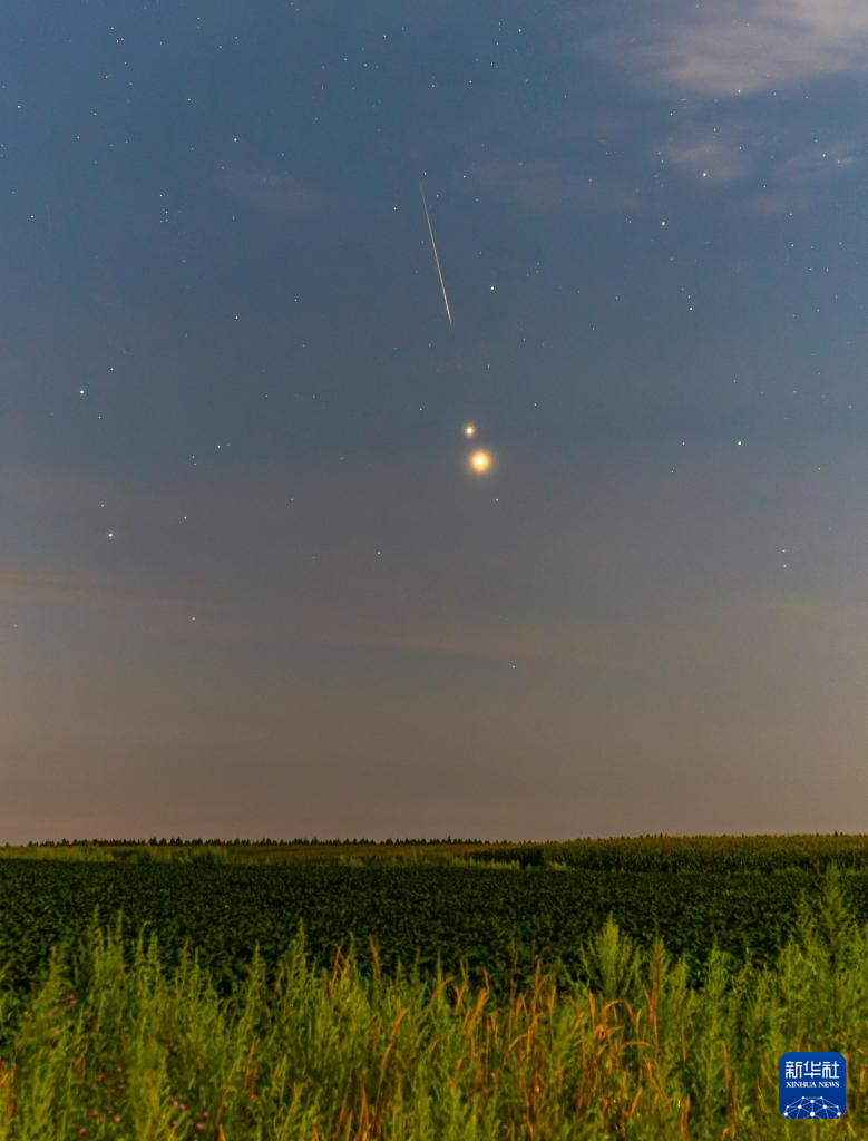 8月13日凌晨在黑龙江省佳木斯市汤原县拍摄的英仙座流星雨。
