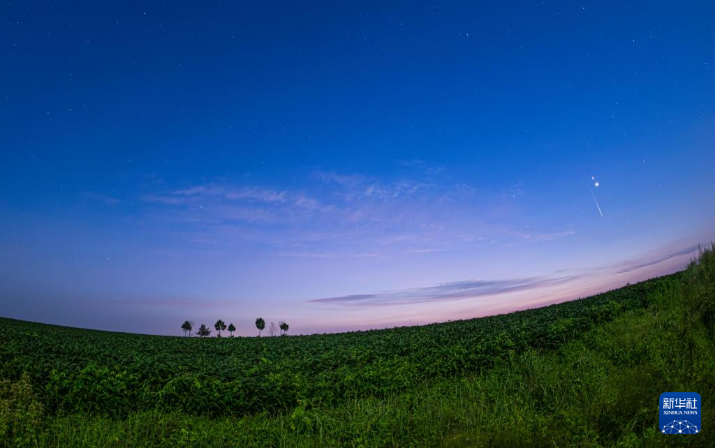 8月12日,在黑龙江省佳木斯市汤原县拍摄的英仙座流星雨。