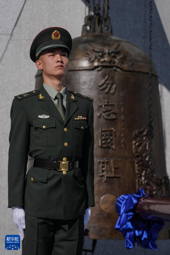 这是9月18日拍摄的“勿忘九一八”撞钟鸣警仪式现场。