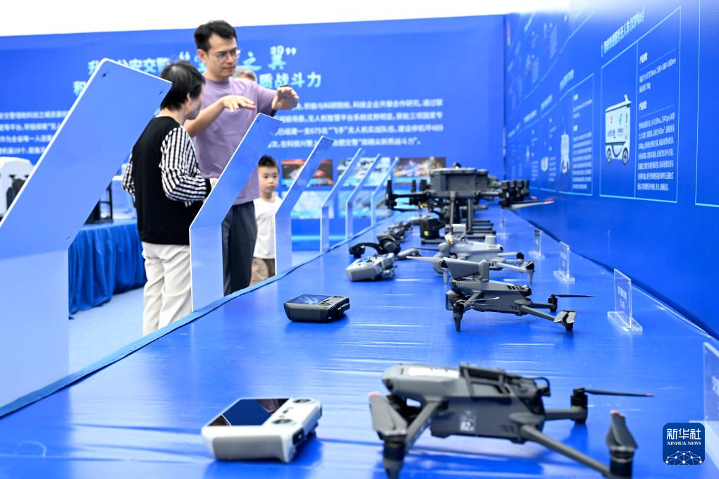 9月21日,观众在“全空间无人体系成果展”上参观合肥交警无人机交通管理装备体系。