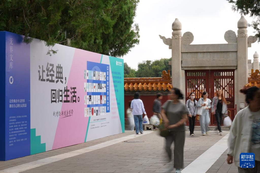 9月22日,市民路过地坛书市的一处展牌。