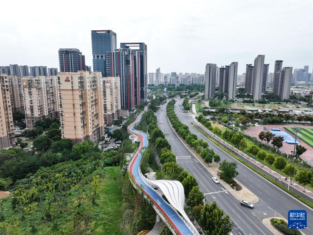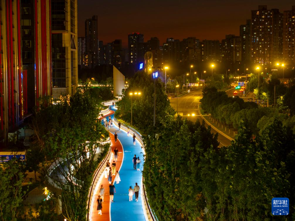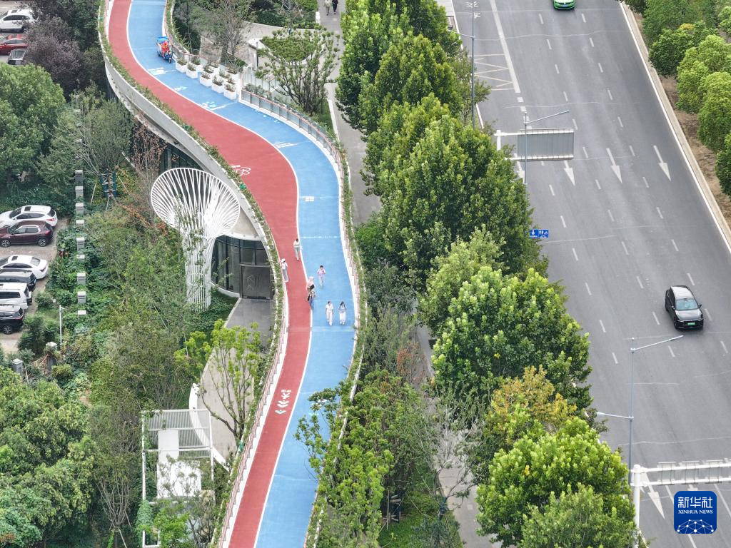位于南京市雨花台区的数据线公园,是江苏省首座高线公园。这座全长约8公里的线性公园,以红蓝交织的步道为纽带串联起社区、医院、商圈等,成为市民家门口的“幸福走廊”。