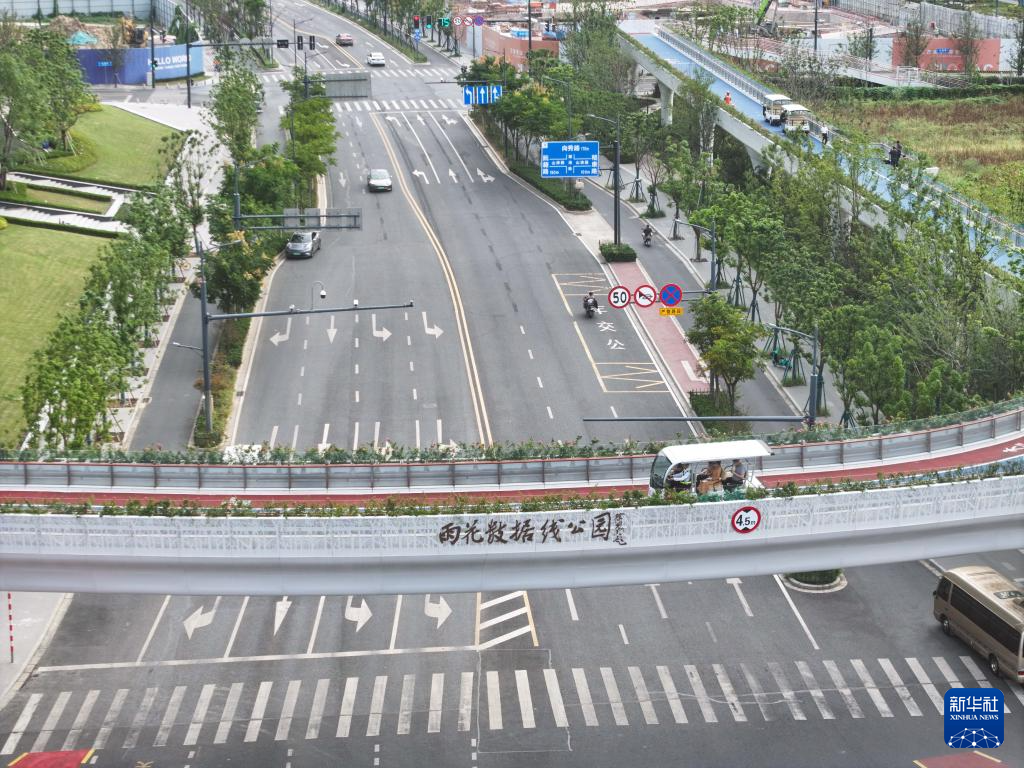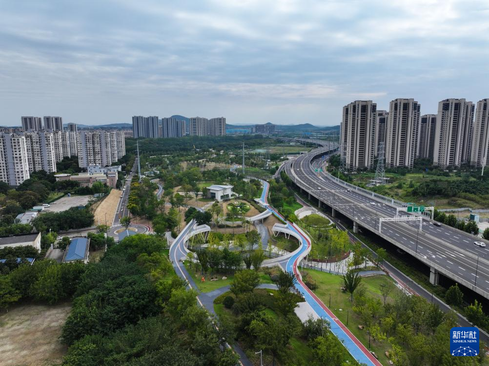 南京市雨花台区的数据线公园局部(9月22日摄,无人机照片)。