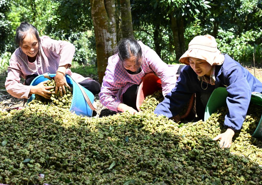 9月22日,云南省文山壮族苗族自治州马关县木厂镇老房子村的农民在分选刚摘下的八角。