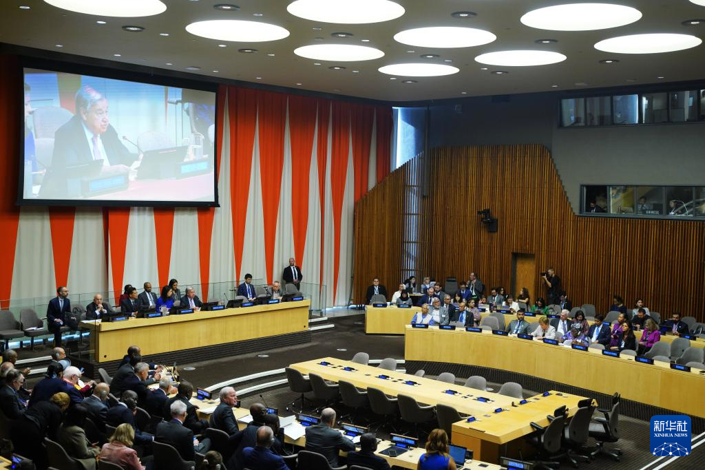 这是9月24日在位于纽约的联合国总部拍摄的可持续、包容和有韧性全球经济峰会现场。