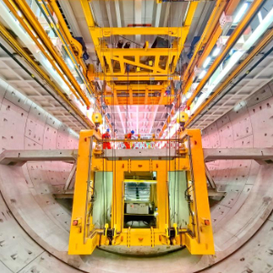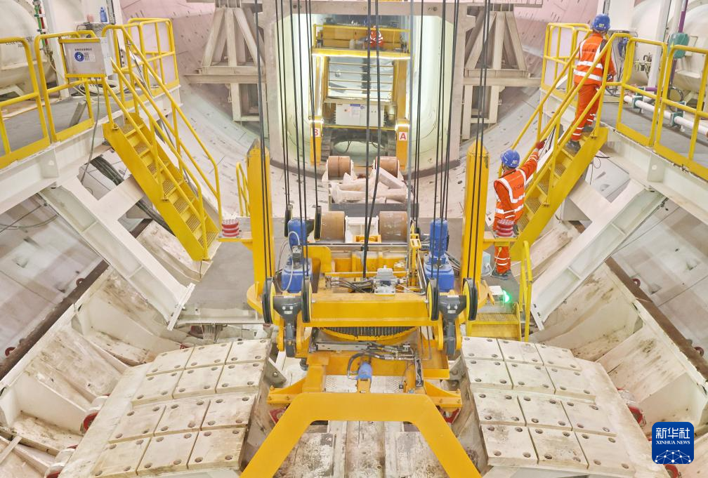 9月28日,施工人员在海太长江隧道工程施工现场拼装管片。
