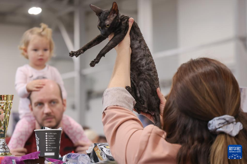 9月28日,在匈牙利布达佩斯,父女俩观看国际猫展。