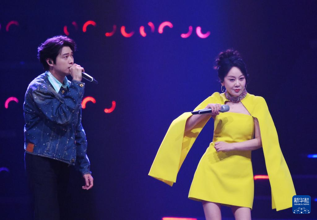 9月28日,王力宏(左)和单依纯在演唱《落叶归根》。