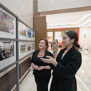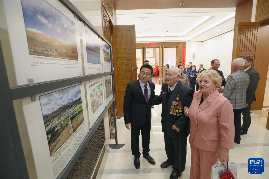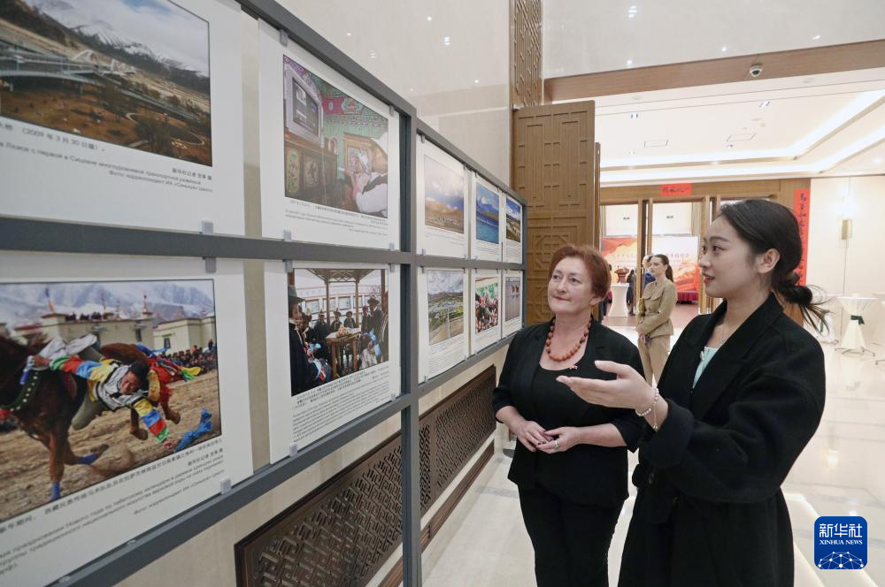 西藏自治区成立60周年发展成就图片展29日在中国驻白俄罗斯大使馆举行。白俄罗斯政界、军界、学者、媒体代表等300余人观看展览。