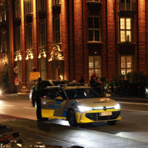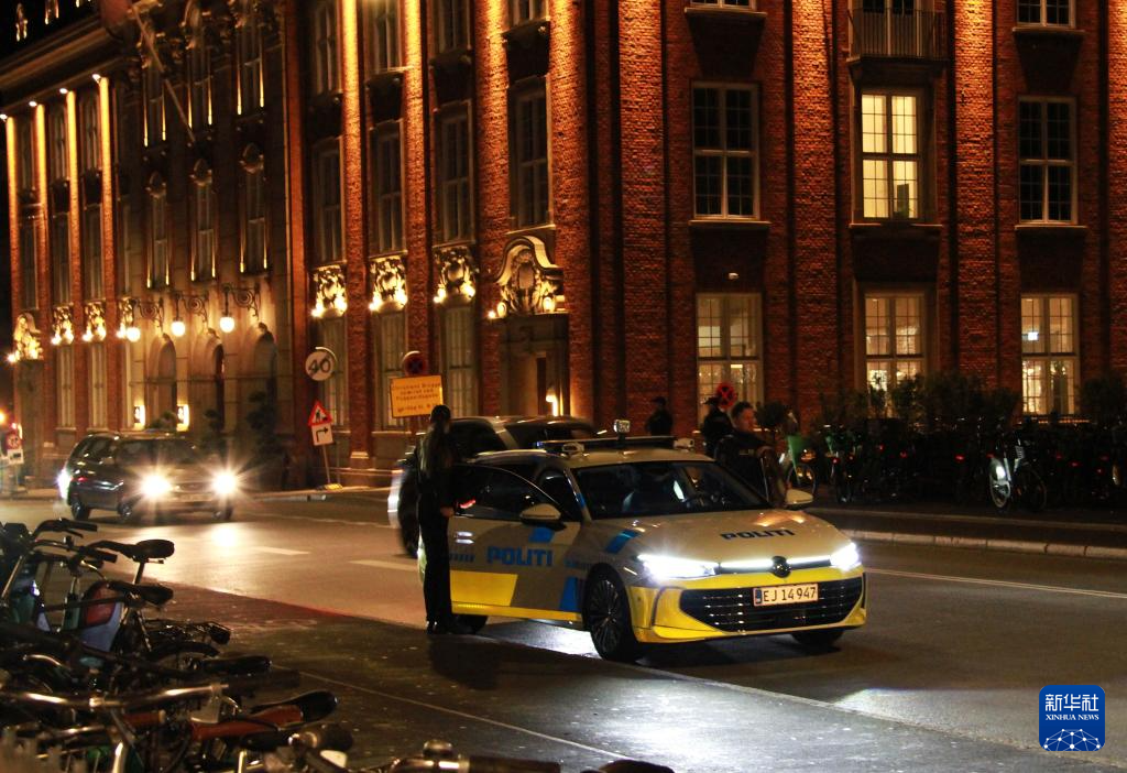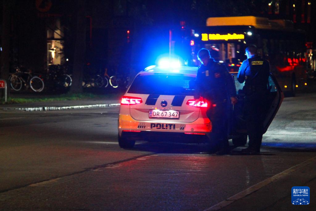 9月30日晚,警车在丹麦首都哥本哈根市中心巡逻。