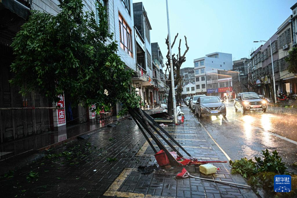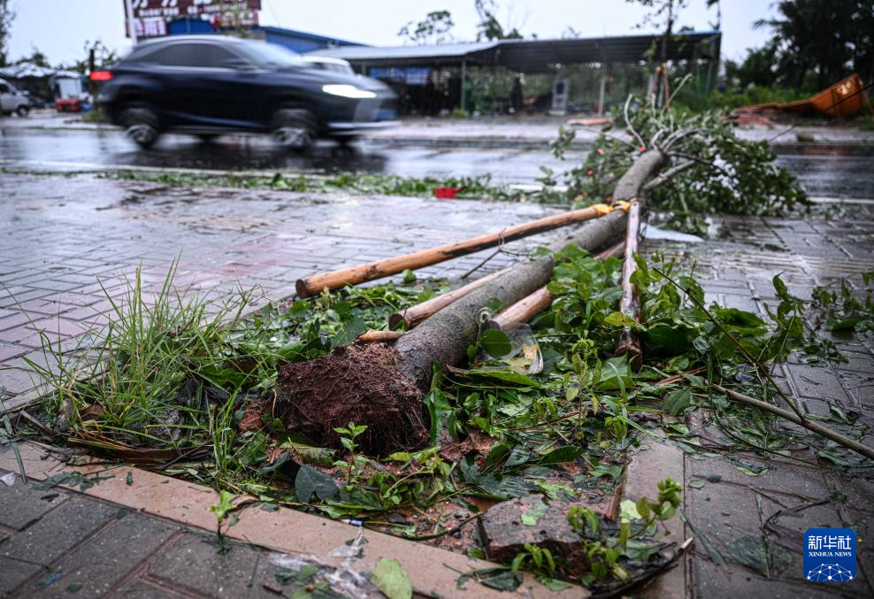 10月5日在海南省文昌市翁田镇拍摄的台风中倒伏的树木。