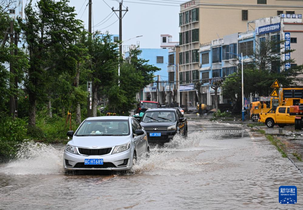 10月5日,车辆行驶在海南省文昌市翁田镇的一处积水路段。