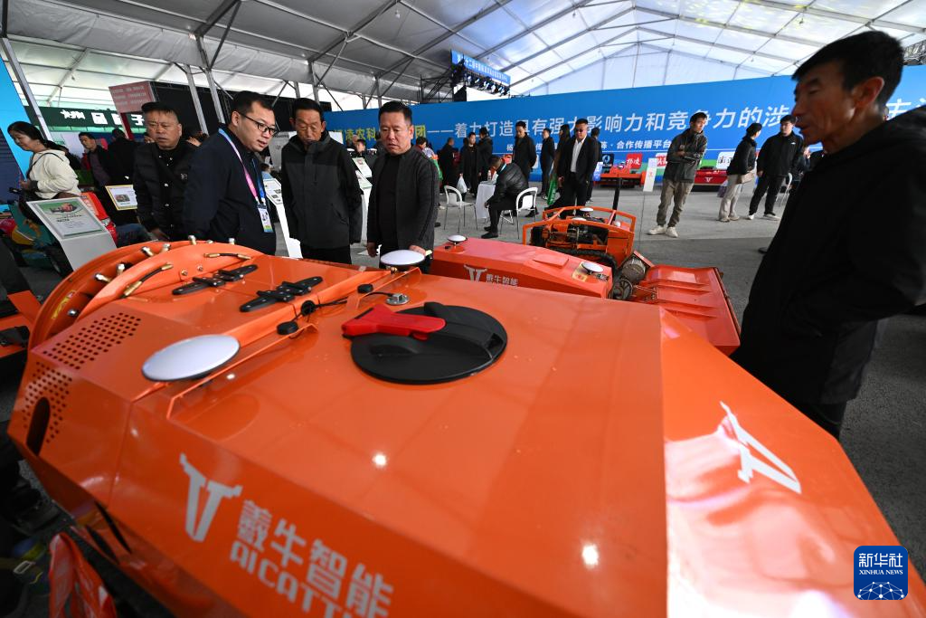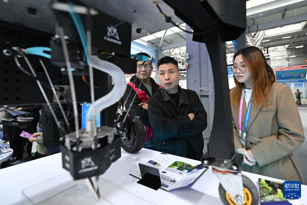 10月25日,参观者在杨凌农高会深圳展区了解智能农业机器人。