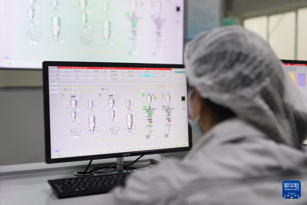 10月30日,在南丰县江西莱檬科技生物有限公司内,工作人员在查看生产数据。