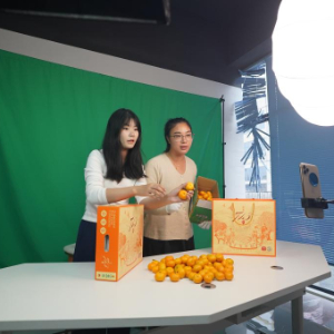 10月30日,在南丰县蜜桔产业科创园,工作人员在直播推销南丰蜜桔。