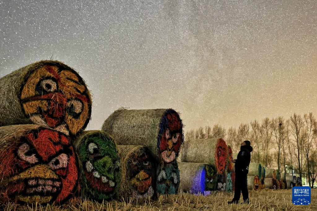 10月31日,摄影爱好者在黑龙江省同江市三江口梦想稻田文化公园观赏秋季银河。