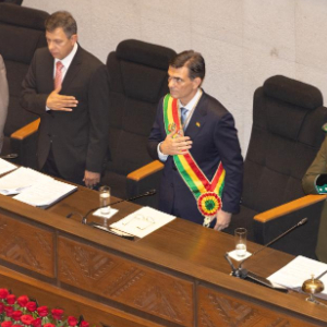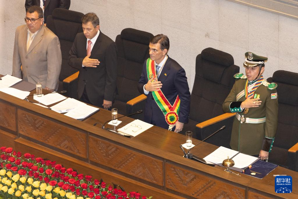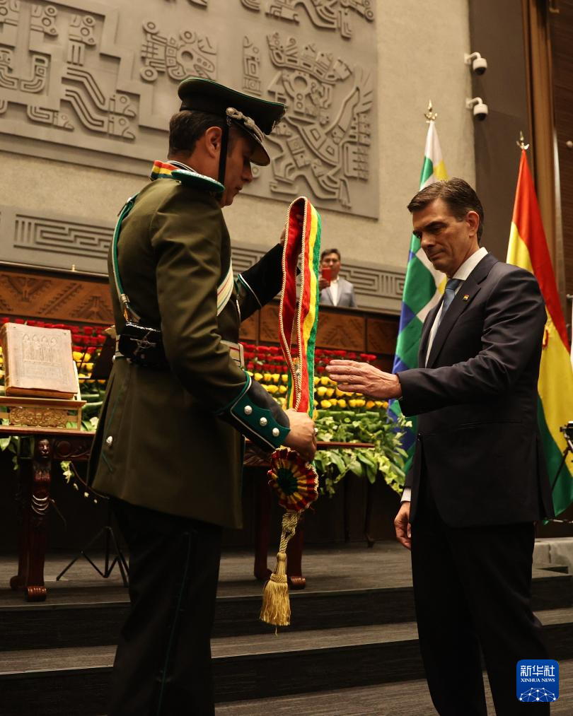 玻利维亚当选总统罗德里戈·帕斯8日在玻国会大厦宣誓就职,任期5年。
