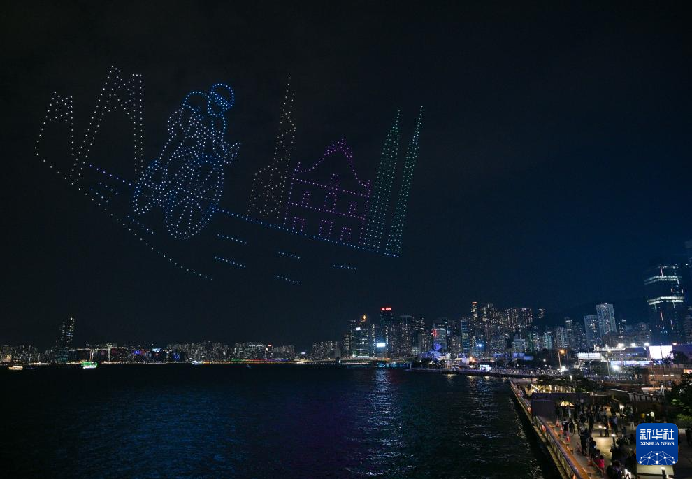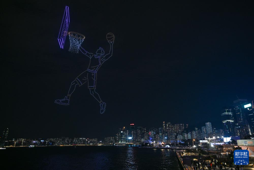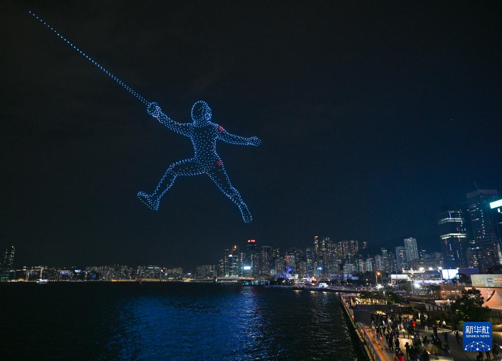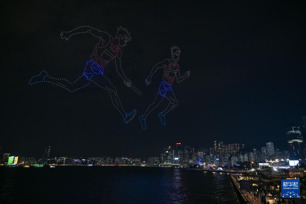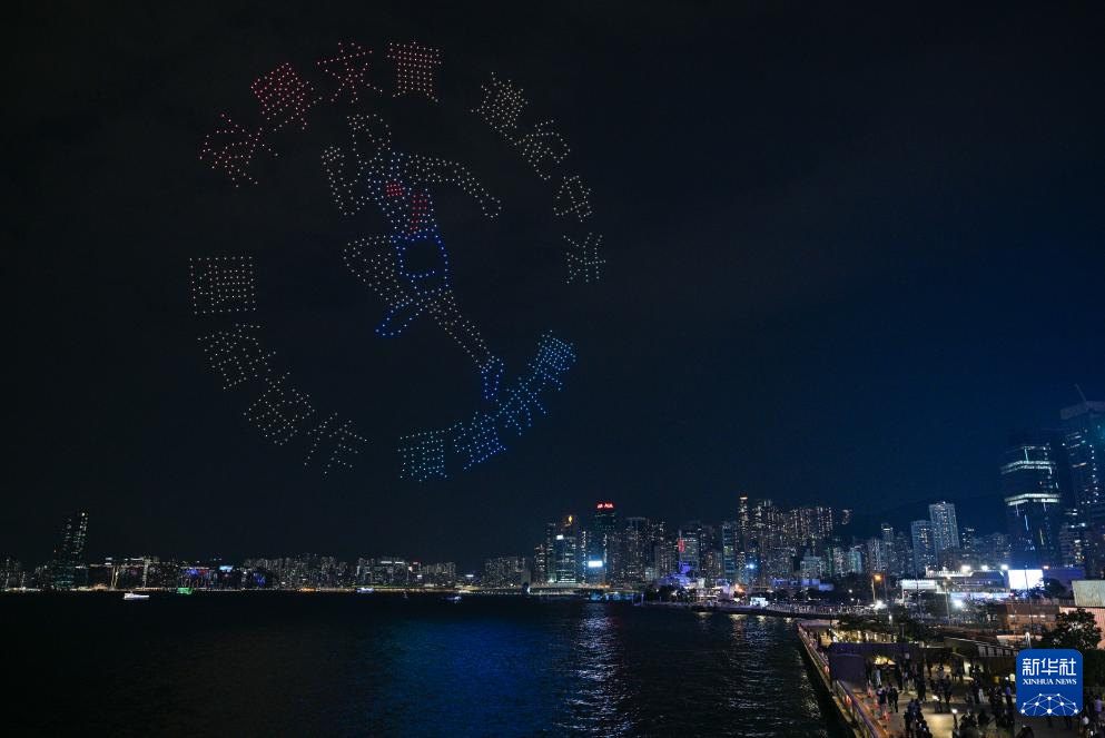 11月18日,“体育力量 闪耀香江”大型无人机表演在香港维多利亚港举行。