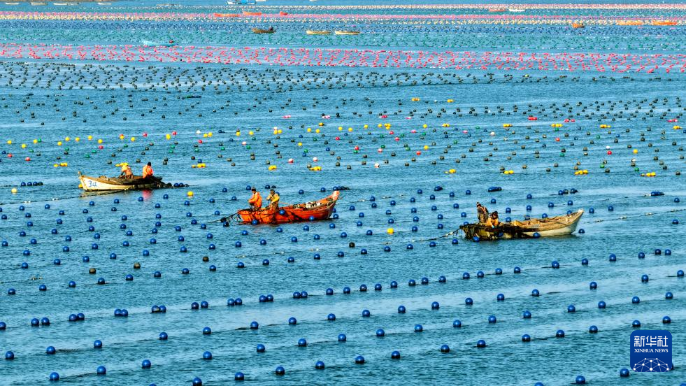眼下,山东省荣成市海带播苗作业全面展开,养殖工人们抓紧时间进行夹苗、播苗等作业。