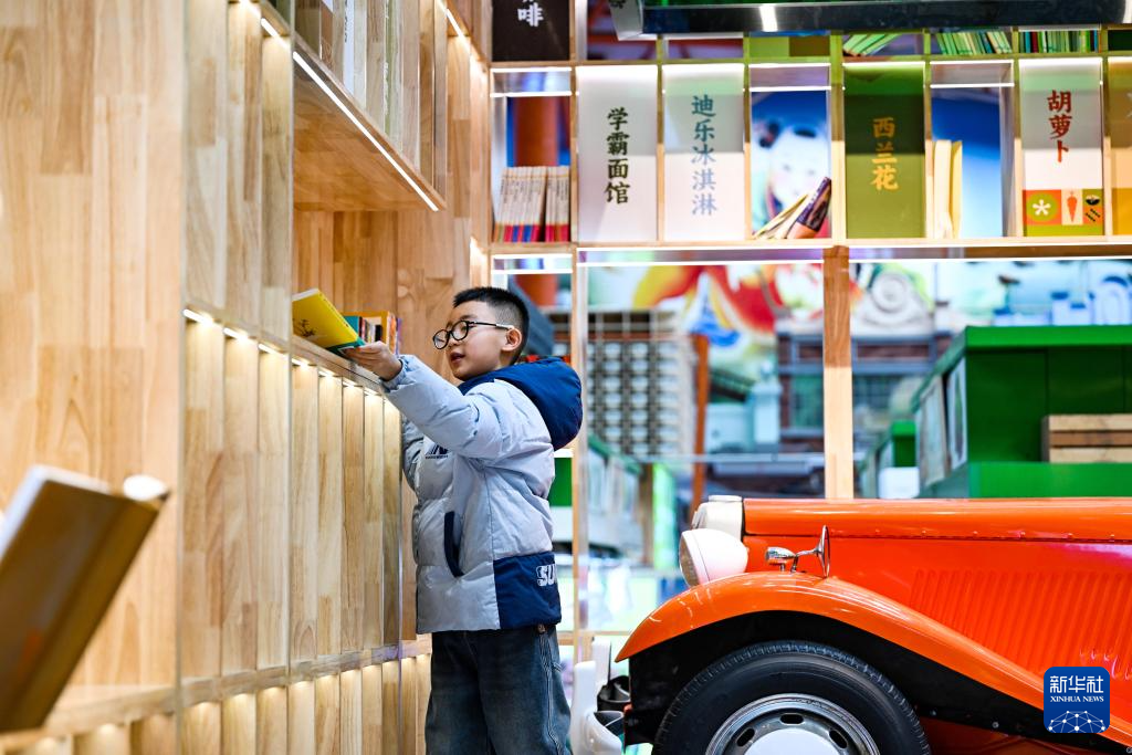 11月25日,小朋友在天津市河西区“美丽的菜市场”图书角挑选书籍。