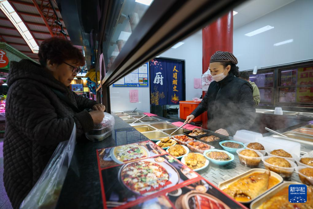 11月25日,市民在天津市河西区“美丽的菜市场”一处小吃档口前选购。