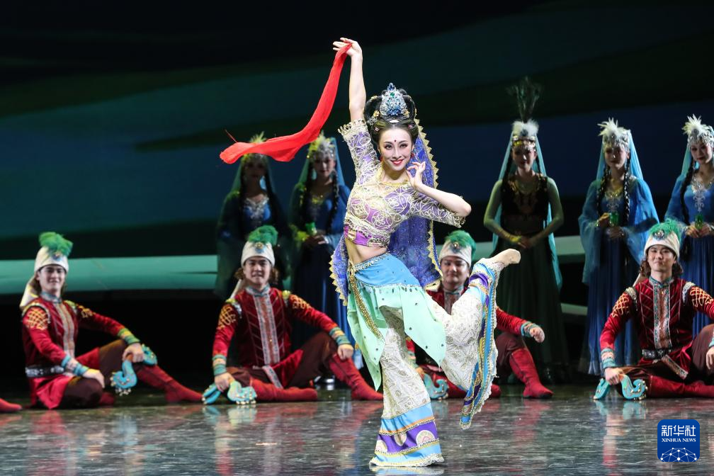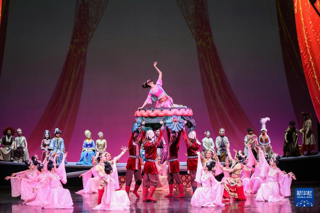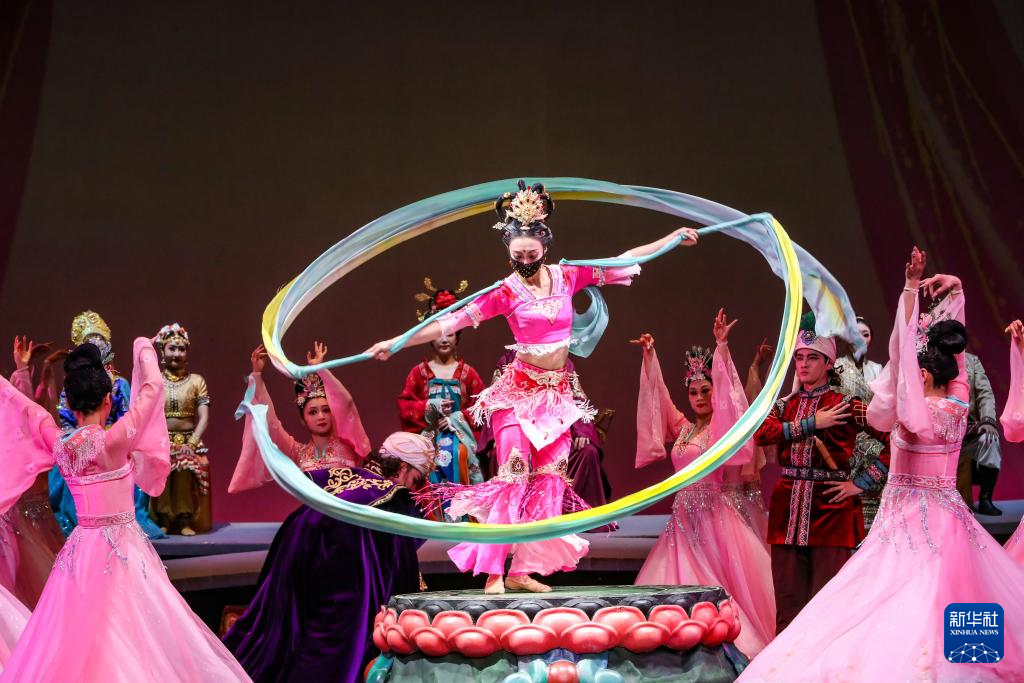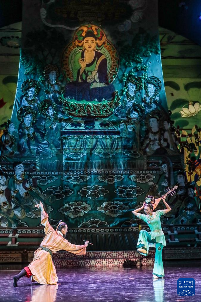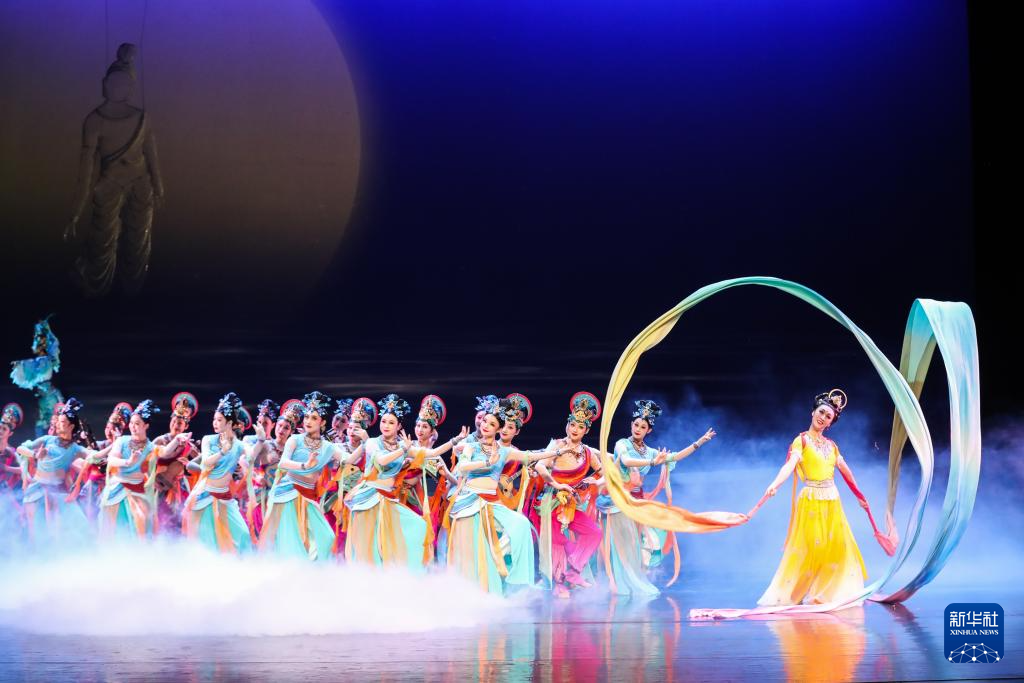 11月28日晚,演员在甘肃大剧院表演2025年新版舞剧《丝路花雨》。
