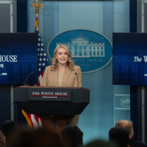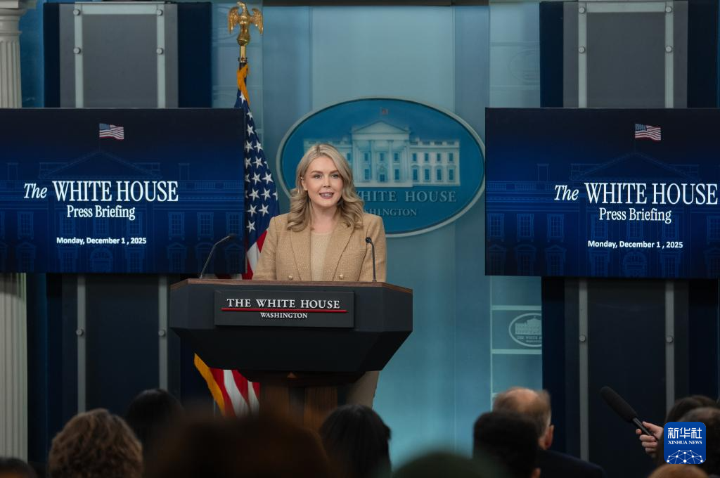 12月1日,在美国首都华盛顿白宫,白宫新闻秘书莱维特出席记者会。