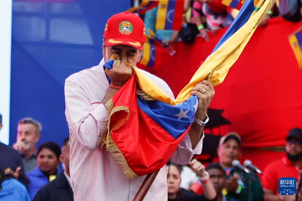 12月1日,委内瑞拉总统马杜罗在首都加拉加斯一场游行活动上亲吻国旗。