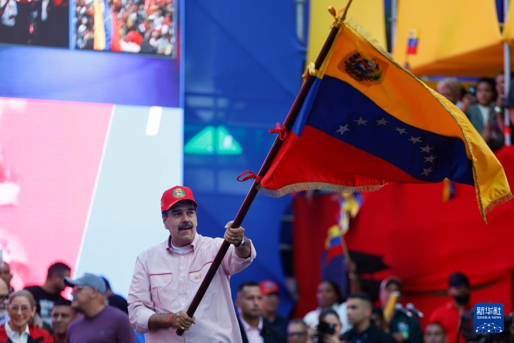 12月1日,委内瑞拉总统马杜罗在首都加拉加斯一场游行活动上挥舞国旗。