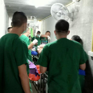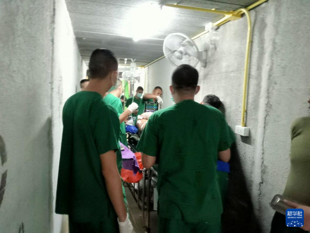 这张泰国军方提供的拍摄于12月10日的照片显示,在泰国素林府落入炮弹的医院,医患人员疏散至掩体。