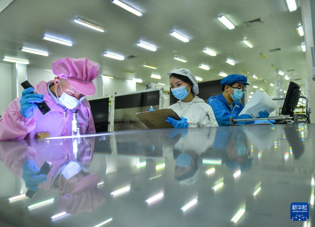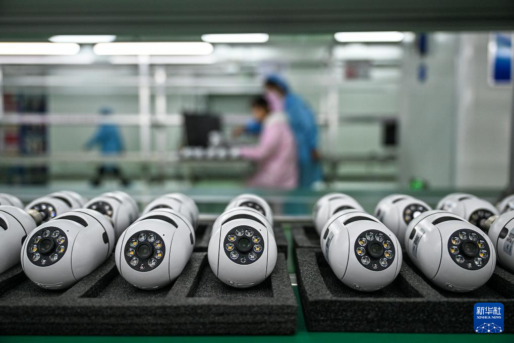 12月11日,在河南省商丘市梁园区商丘集美数智产业园,工人在摄像头生产线上赶制产品订单。