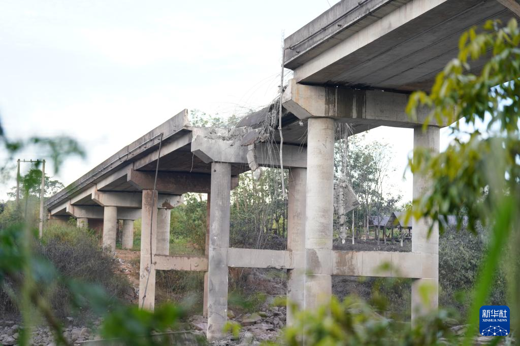 这是12月13日拍摄的柬埔寨菩萨省边境地区遭到泰军轰炸的桥梁。