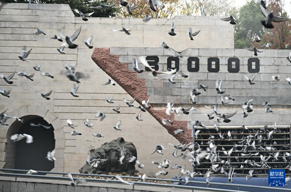 12月13日,南京大屠杀死难者国家公祭仪式现场放飞和平鸽。
