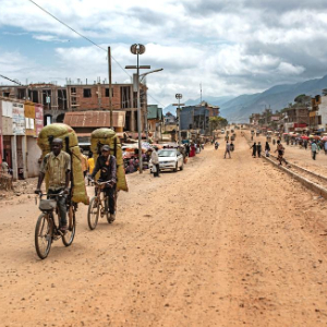 12月15日,在刚果(金)东部城市乌维拉,当地居民用自行车搬运物资。