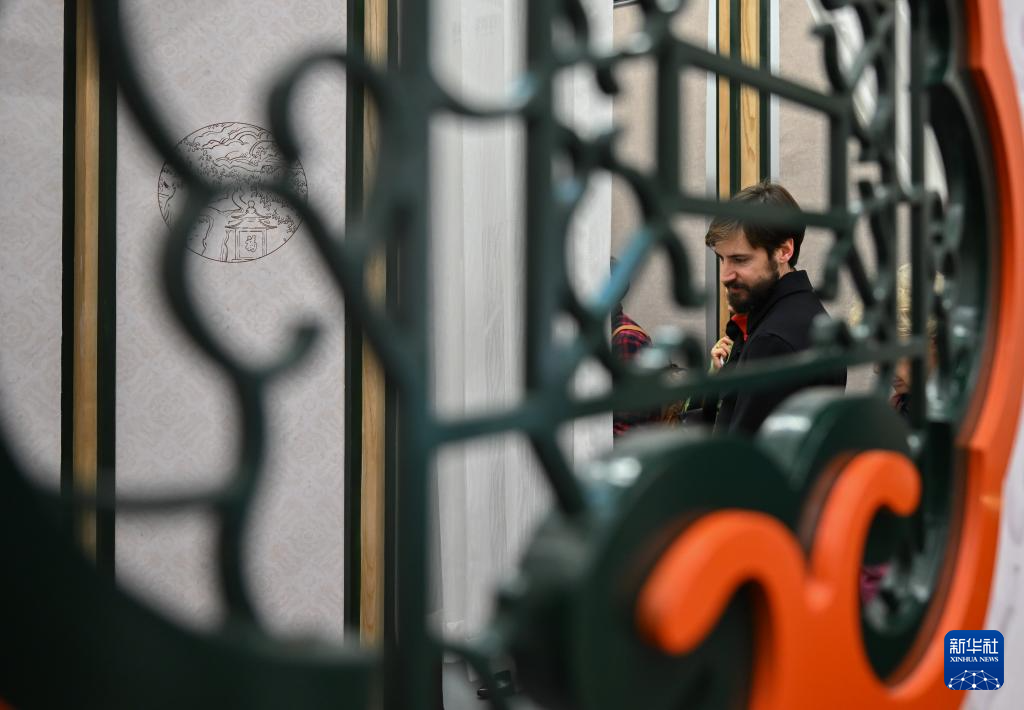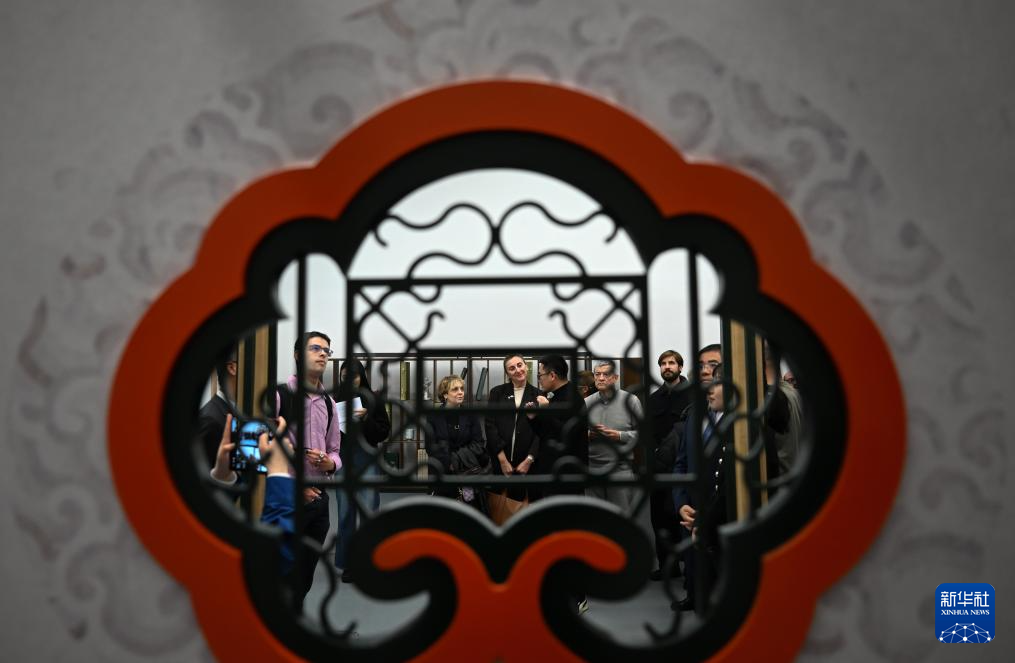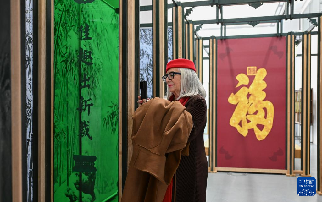 12月16日,在西班牙马德里中国文化中心,参观者在“安善萃锦——中式生活美学展”上参观。