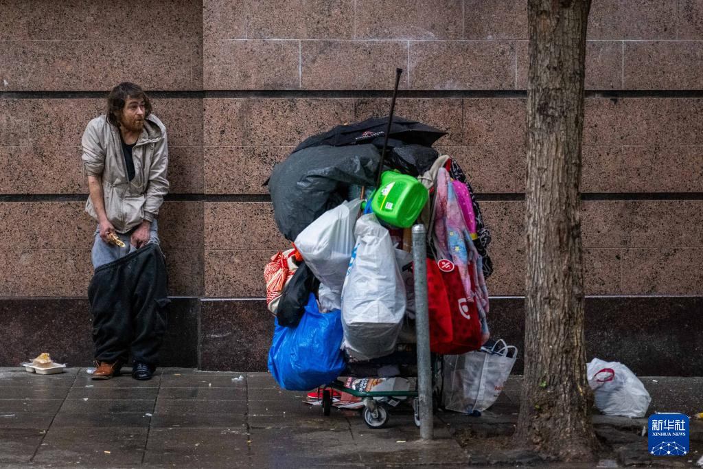 2025年12月31日,在美国加利福尼亚州旧金山,无家可归者站在街头。