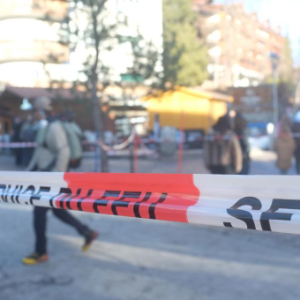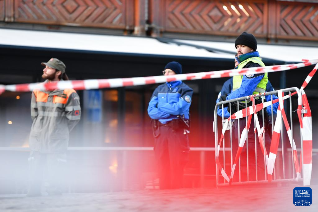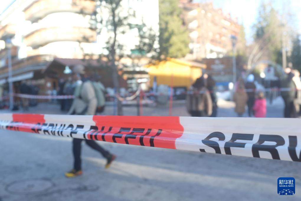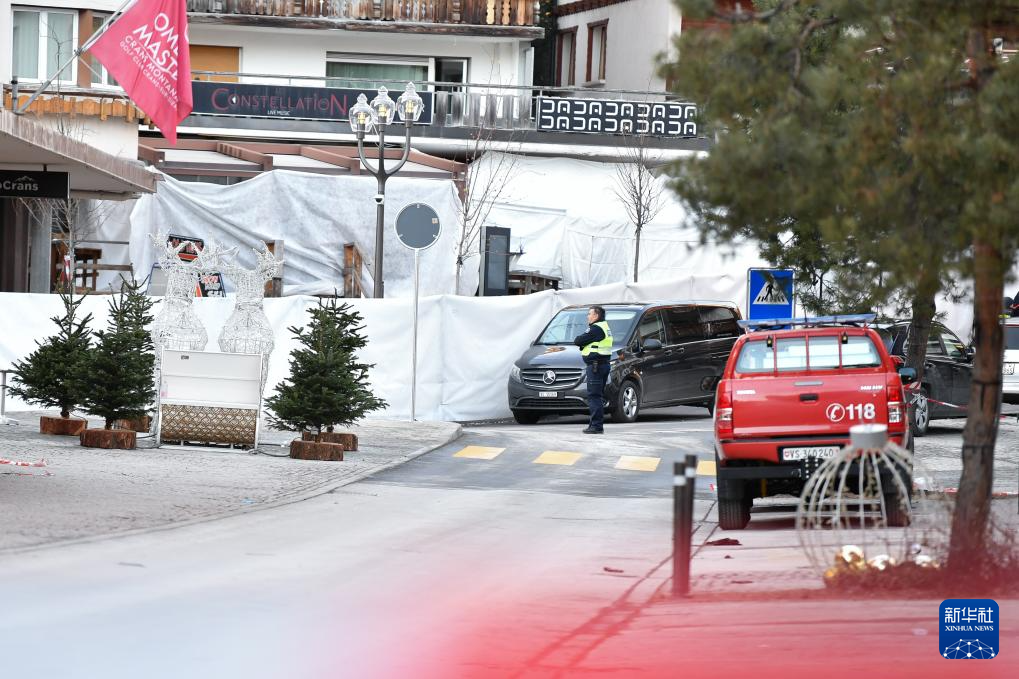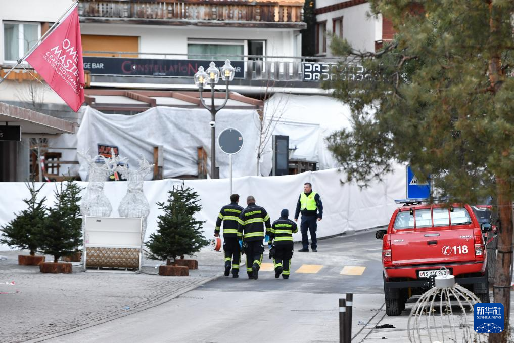 1月1日,在瑞士克朗-蒙大拿,警方在发生火灾的酒吧附近区域拉起警戒线。
